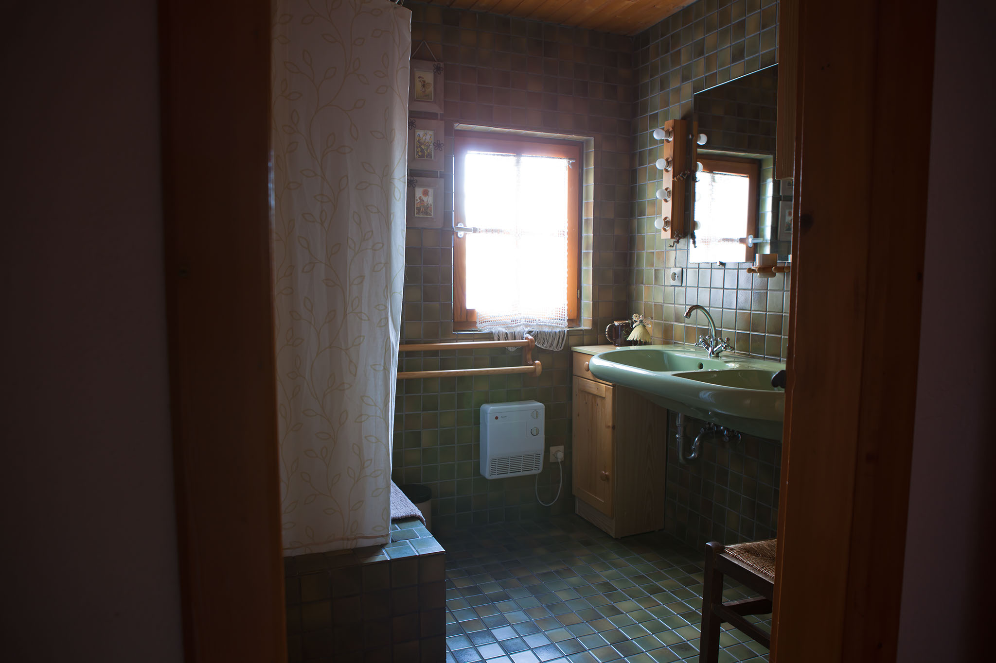 - d'une douche avec vasque haute permettant le bain pour les enfants
